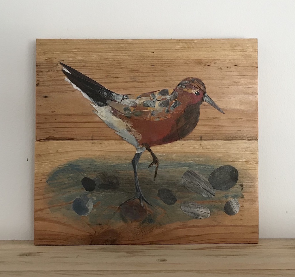 • Brent Goose - Paper cut collage and paint on recycled wood