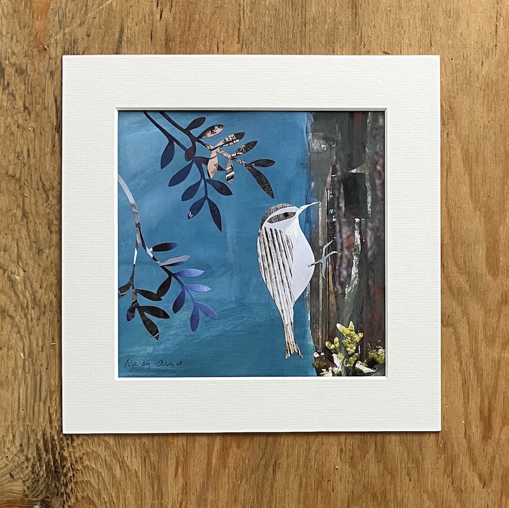 Treecreeper – collage and paint on paper – unframed